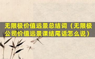 无限极价值远景总结词(无限极公司价值远景课结尾话怎么说)