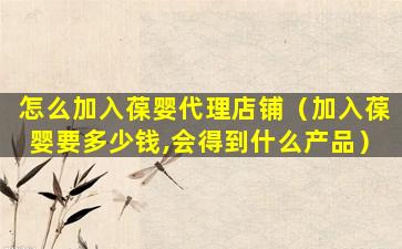 怎么加入葆婴代理店铺(加入葆婴要多少钱,会得到什么产品)