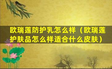 欧瑞莲防护乳怎么样(欧瑞莲护肤品怎么样适合什么皮肤)