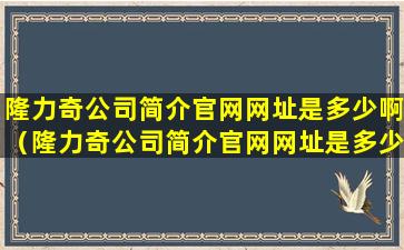 2、隆力奇公司简介官网网址是多少啊怎么查