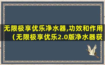 无限极享优乐净水器,功效和作用(无限极享优乐2.0版净水器获得哪几项认证)
