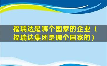 福瑞达是哪个国家的企业(福瑞达集团是哪个国家的)