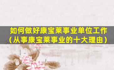 如何做好康宝莱事业单位工作(从事康宝莱事业的十大理由)