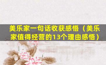 美乐家一句话收获感悟(美乐家值得经营的13个理由感悟)
