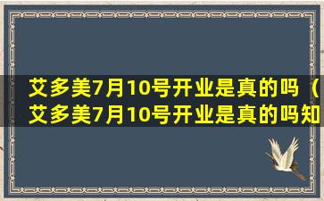 艾多美7月10号开业是真的吗(艾多美7月10号开业是真的吗知乎)