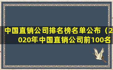 中国直销公司排名榜名单公布(2020年中国直销公司前100名)