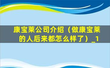 康宝莱公司介绍(做康宝莱的人后来都怎么样了)