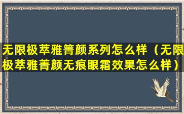 无限极萃雅箐颜系列怎么样(无限极萃雅菁颜无痕眼霜效果怎么样)