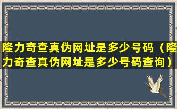 隆力奇查真伪网址是多少号码(隆力奇查真伪网址是多少号码查询)