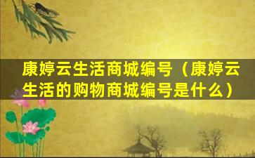 康婷云生活商城编号(康婷云生活的购物商城编号是什么)