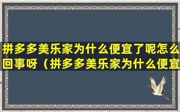 拼多多美乐家为什么便宜了呢怎么回事呀(拼多多美乐家为什么便宜了呢怎么回事呀知乎)