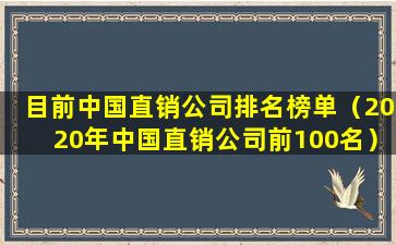 目前中国直销公司排名榜单(2020年中国直销公司前100名)