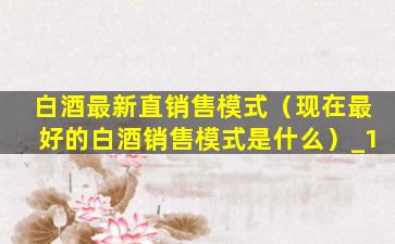 白酒最新直销售模式(现在最好的白酒销售模式是什么)
