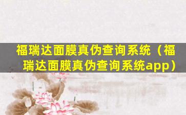 福瑞达面膜真伪查询系统(福瑞达面膜真伪查询系统app)