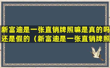 新富迪是一张直销牌照嘛是真的吗还是假的(新富迪是一张直销牌照嘛是真的吗还是假的啊)