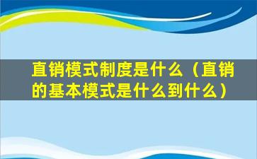 1、直销模式制度是什么