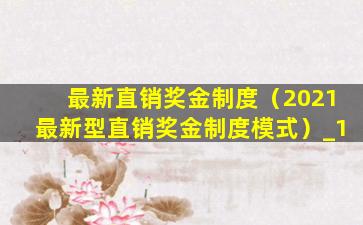 最新直销奖金制度(2021最新型直销奖金制度模式)