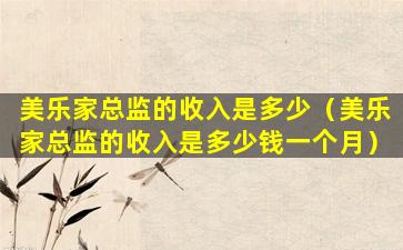 美乐家总监的收入是多少(美乐家总监的收入是多少钱一个月)
