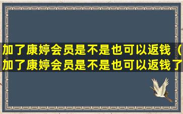 加了康婷会员是不是也可以返钱(加了康婷会员是不是也可以返钱了)