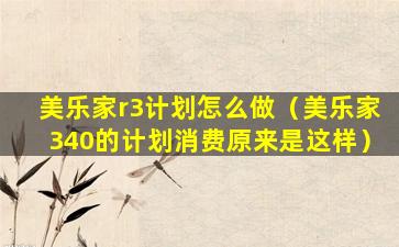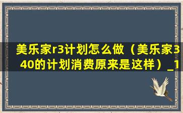 美乐家r3计划怎么做(美乐家340的计划消费原来是这样)