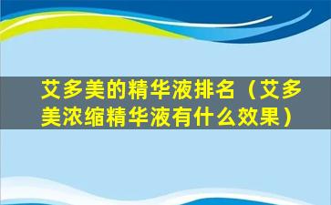 艾多美的精华液排名(艾多美浓缩精华液有什么效果)