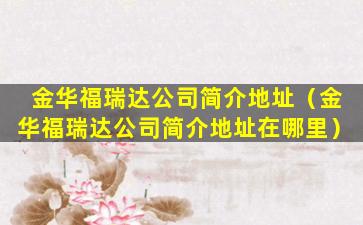 金华福瑞达公司简介地址(金华福瑞达公司简介地址在哪里)