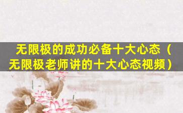 无限极的成功必备十大心态(无限极老师讲的十大心态视频)
