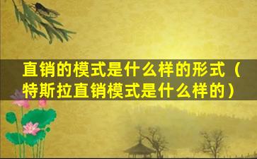 直销的模式是什么样的形式(特斯拉直销模式是什么样的)