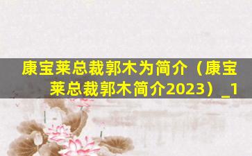 康宝莱总裁郭木为简介(康宝莱总裁郭木简介2023)