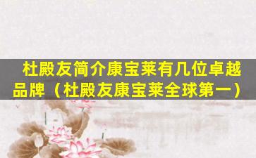 杜殿友简介康宝莱有几位卓越品牌(杜殿友康宝莱全球第一)