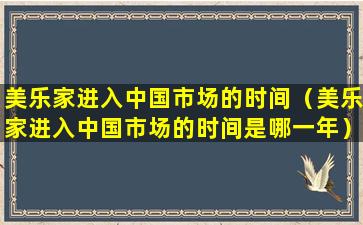美乐家进入中国市场的时间(美乐家进入中国市场的时间是哪一年)
