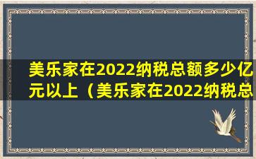 美乐家在2022纳税总额多少亿元以上(美乐家在2022纳税总额多少亿元以上呢)