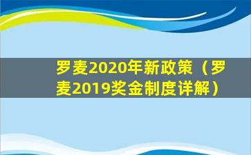 罗麦2020年新政策(罗麦2019奖金制度详解)
