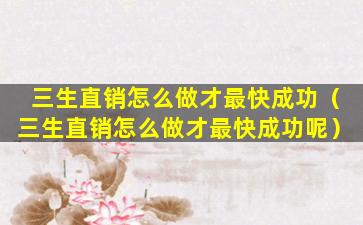 三生直销怎么做才最快成功(三生直销怎么做才最快成功呢)