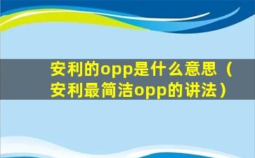 安利的opp是什么意思(安利最简洁opp的讲法)