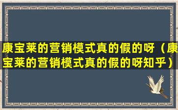 康宝莱的营销模式真的假的呀(康宝莱的营销模式真的假的呀知乎)