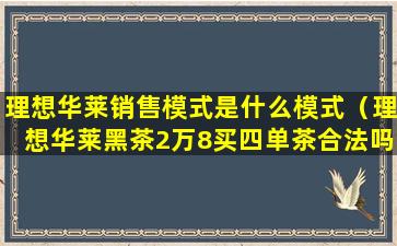 理想华莱销售模式是什么模式(理想华莱黑茶2万8买四单茶合法吗)