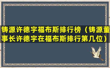 铸源许德宇福布斯排行榜(铸源董事长许德宇在福布斯排行第几位)