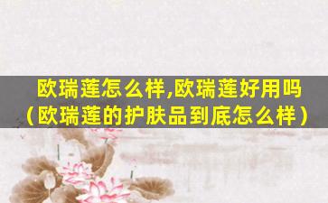1、欧瑞莲怎么样,欧瑞莲好用吗