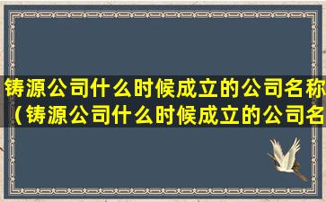 铸源公司什么时候成立的公司名称(铸源公司什么时候成立的公司名称是)