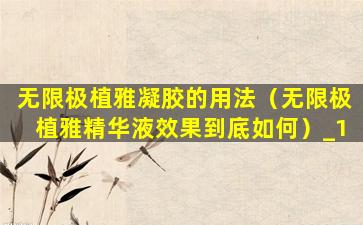 无限极植雅凝胶的用法(无限极植雅精华液效果到底如何)
