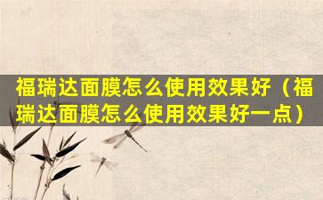 福瑞达面膜怎么使用效果好(福瑞达面膜怎么使用效果好一点)