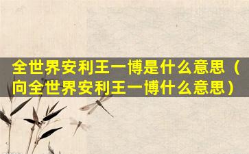 全世界安利王一博是什么意思(向全世界安利王一博什么意思)