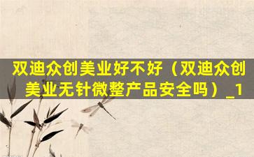 双迪众创美业好不好(双迪众创美业无针微整产品安全吗)
