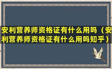 安利营养师资格证有什么用吗(安利营养师资格证有什么用吗知乎)