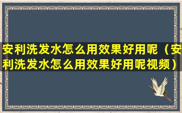 安利洗发水怎么用效果好用呢(安利洗发水怎么用效果好用呢视频)
