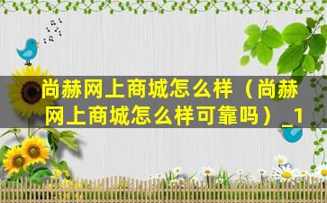 尚赫网上商城怎么样(尚赫网上商城怎么样可靠吗)