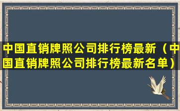 中国直销牌照公司排行榜最新(中国直销牌照公司排行榜最新名单)