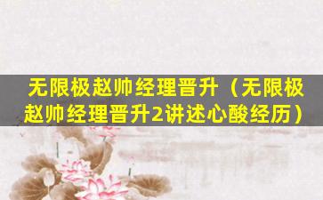 无限极赵帅经理晋升(无限极赵帅经理晋升2讲述心酸经历)