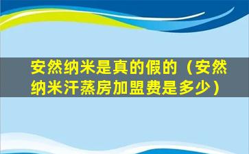 安然纳米是真的假的(安然纳米汗蒸房加盟费是多少)